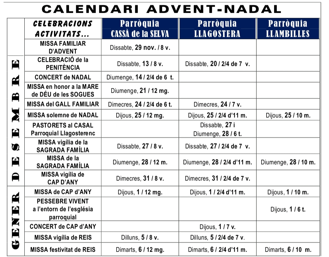 Web oficial de les parròquies de Sant Martí de Cassà de la Selva i Sant Feliu de Llagostera